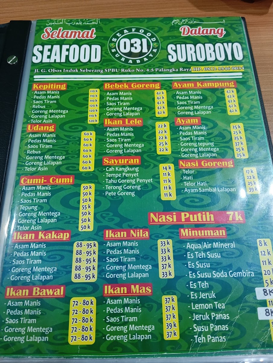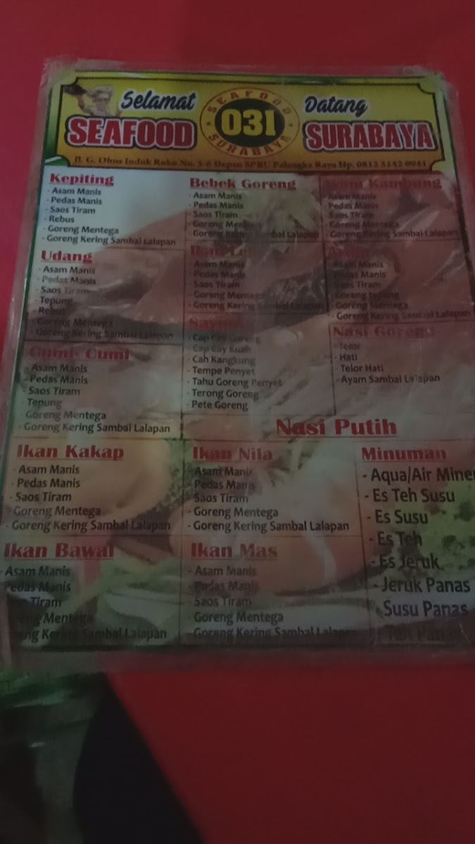 Seafood & Station Coffee 031 Surabaya 031 in Palangka Raya offers a refreshing take on classic Indonesian seafood, blending freshness with a cozy, late-night dining experience. This spot is best known for its Nila Goreng Mentega, a butter-fried fish dish praised for its rich, savory sauce that perfectly complements the crispy texture. While wait times can be a bit long, the quality and flavor make it worth the patience.
